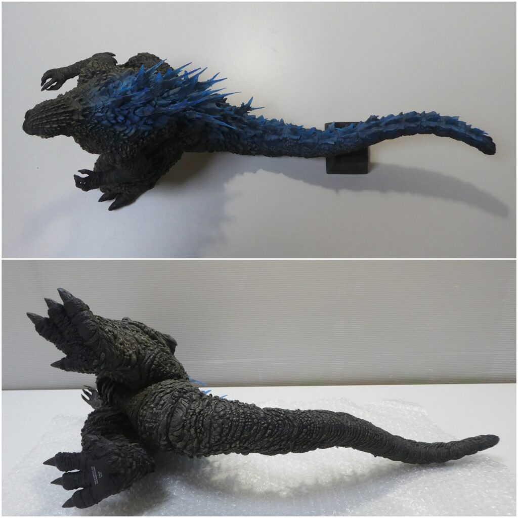 少年リック限定版では、背びれ~尾びれを透明素材で成形し、放射熱線を放った直後も青白く光る尻尾と背びれの様子を再現しました。